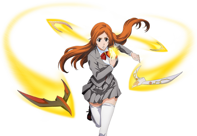- Орихимэ Иноуэ. Пятнадцатилетняя одноклассница Ичиго, человек и очень привлекательная девушка. Изначально была эпизодическим персонажем, но со временем ее роль в сюжете (и в манге, и в аниме) существенно расширили. Они дружили с Ичиго, но несколько отдалились друг от друга после того, как главный герой стал работать вместе с Рукией. Известно, что Орихимэ – сирота, у которой нет никого. Когда Ичиго снова стал проводить с ней больше времени, он случайно передал Орихимэ часть своих сил. Девушка смогла видеть души людей и пустых, а вскоре научилась давать им отпор и развила собственную способность изменения реальности. Несмотря на все выпавшие на ее долю испытания, Орихимэ всегда сохраняет оптимизм и искреннюю привязанность к своим друзьям.